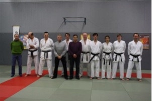 Hieronder de groep van geslaagden op het examen voor DAN-en hogere DAN graden, onder toezicht van de Stijlcommissie shotokan VKF-VKV